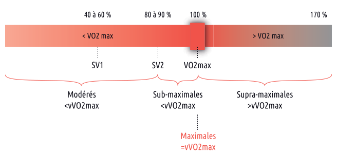 À VO2max : Pour une optimisation : contrôler la récupération (supérieur à 50%) ; allonger la durée des temps limites (1,5 x Tlim) ; limiter les séances avec ratio 1 (1:1) chez les athletes confirmés ; tendre rapidement vers des ratios 2 (1:1/2) (40/20; 30/15; 20/10...) ; tendre chez l'entraîné vers du ratio 3 (45/15; 30/10...).
